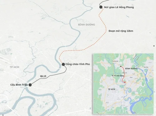 Quốc lộ 13 đoạn dài 6 km từ cầu Bình Triệu đến Vĩnh Bình sẽ...